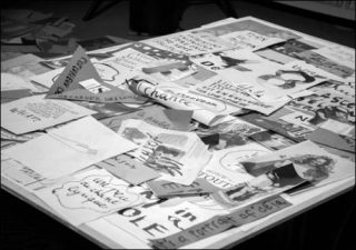L’exposition «Degré 48» au Cneai présente également les dispositifs éditoriaux de documentation et d’impression imaginés par le collectif g.u.i, remettant ainsi en jeu les techniques et les modes d’assemblages des captations vidéos et photos des soirées, les fichiers sources des artistes, les manifestes écrits, ainsi que la documentation produite par le public.