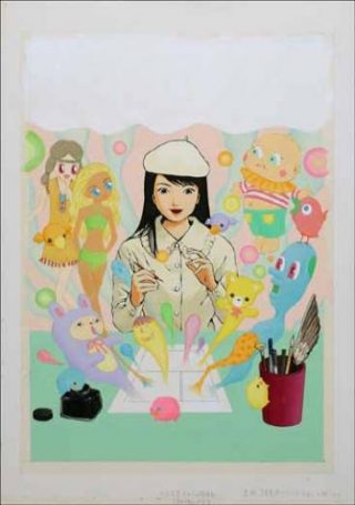 — Usamaru Furuya, Plastic Girl, 2000. Acrylique sur carton. 29,7 x 41,7 cm.
