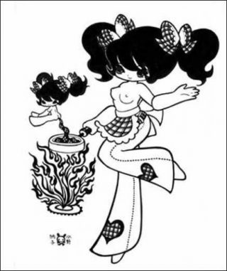 — Junko Mizuno, Caca poêle. Encre sur papier. 25,5 x 18,5 cm.
