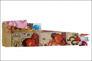 Ces recherches le mènent à travailler avec différents objets (fragments de papier, d’emballages, punaises ou morceaux de plastiques) en créant des assemblages et collages. Cette pratique, en résonance avec sa peinture, le rapproche des démarches de dAdA (dans la façon d’aborder l’espace urbain et ses représentations) et de l’expressionnisme (par sa traduction en peinture «expérimentale»), mais dans une mise en question de la peinture.