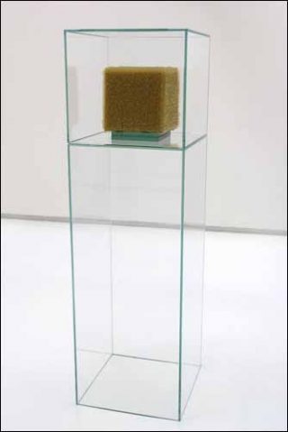 — Cubikron, 2005. Installation. Pâtes alimentaires, verre. Cube : 23 x 23 x 19 cm, structure : 45 x 45 x 150 cm.
