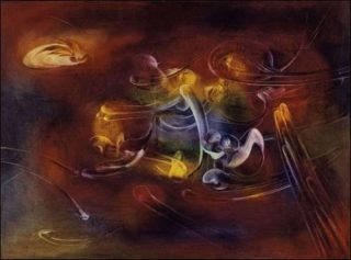 — Judith Reigl, Flambeau de noces chimiques. Ecriture automatique, complète, psychique, physique, 1954. Huile sur toile. 168 x 228,5 cm