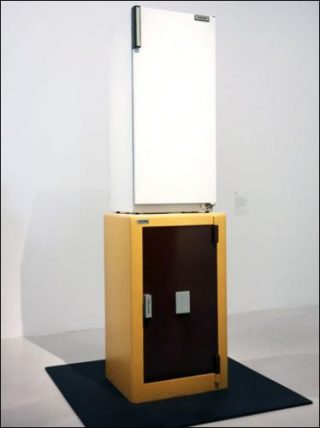 — Bertrand Lavier, Brandt/Haffner, 1984. Réfrigérateur sur coffre-fort, 251 x 70 x 65 cm