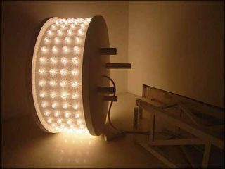 — Rêve de tour (détail), 2006. Acier, bois, ampoule. 1000 x 300 x 300 cm.