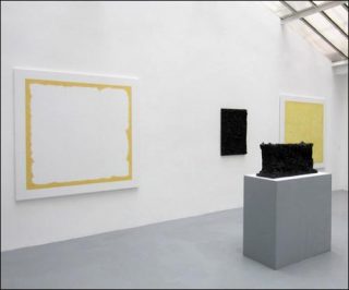 Pour cette exposition intitulée «des Calcinations au Jaune de Naples», l’artiste renoue avec quelques Å“uvres du passé, les Calcinations, qui datent des années 60. Elles ne sont en aucun cas des représentations d’objets brûlés, mais des reliefs en papier imprégné d’émulsion de résine vinylique chargée d’oxyde de fer noir. Par leur noirceur, elles étaient pour l’artiste un moyen de faire table rase et d’ouvrir la voie à d’autres préoccupations.