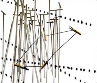 Cet intérêt pour le mouvement s’exprime aussi à travers le passage de l’espace mental produit par le montage des différents éléments à un espace physique de déambulation et d’expérimentation. Il coïncide enfin avec une réalité vécue par l’artiste elle-même qui, depuis 2003, parcourt le monde et séjourne dans des villes d’Europe, d’Amérique et, plus récemment, de Russie et de Chine.