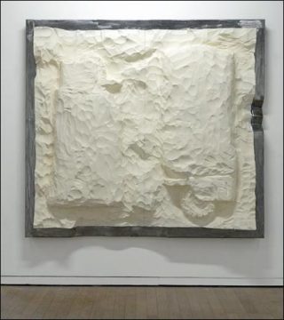 Ces panneaux de médium sculptés se réfèrent à la notion de fossiles et représentent des objets actuels voués sans doute, dans un futur plus ou moins éloigné, à disparaître. Ces hauts reliefs témoigneront effectivement de ces objets quotidiens et périssables peu à peu tombés dans l’oubli. Je leur confère ici un usage vain avec les prises inclues dans l’ensemble. Ces dernières sont fonctionnelles, de l’électricité passe à travers les câbles.