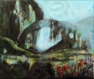 Les Å“uvres de Solène Lestage sont au contraire ancrées dans les mondes d’ici, dans la terre et la mémoire du Bordelais. En s’inspirant de la production viticole du château d’Arsac, elle produit une série de tableaux qui évoquent la lutte contre le gel que les vignerons mènent au moyen de feux nocturnes allumés dans les vignes. Solène Lestage exprime l’ambivalence du feu salvateur et destructeur. Elle poursuit ainsi son étude sur les tentatives des hommes de dompter la nature sauvage.