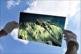 Avec Margot Gaches, le regard se porte vers l’ailleurs des monde imaginaires. Ses photographies mettent côte à côte deux images de paysages à la fois différents mais ressemblants. La cime d’une montagne enneigée et la dune d’un désert aride. Ces mises en dialogue des contraires font imaginer des dimensions parallèles et des univers multiples, d’autant plus qu’elles sont accompagnées d’extraits du roman de science-fiction de Margot Gaches, Les Explorateurs. Une autre expression de l’ailleurs…