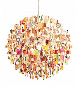 — Luminaire, Tide Chandelier, 1996. Objets ramassés sur les plages du Kent, fil de nylon. Haut 250 cm x Diam 150 cm.