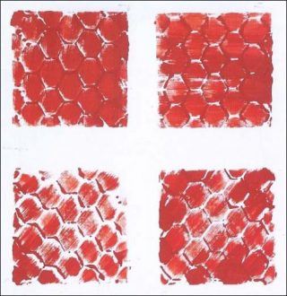 Dans les travaux sur les murs de l’exposition à la galerie Béa-Ba, on peut contempler les différentes sortes d’instruments de marquage utilisés qui s’accouplent avec les surfaces choisies, les dessins tracés et les effets obtenus. Grace aux «moyens du bord» qui lui sont chers, Bernard Pagès s’évertue à ne jamais tomber dans l’excès et l’emphase, à constamment refuser la sophistication.