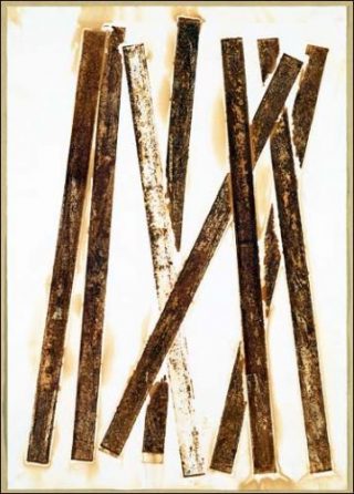 Dans cette exposition consacrée à son Å“uvre, il est particulièrement intéressant de découvrir les matériaux très usuels que l’artiste utilise: bois, branches, cordages, tôles, tuyaux, puis briques, parpaings, madriers pris dans des assemblages de maçonnerie, de plâtre, de mortier ou de ciment. Tous ces matériaux sont utilisés de manière très traditionnelle, mais seulement hors situation et pour en faire tout-à -fait autre chose. En cela, on retrouve une fois de plus ce décalage qui fait passer de l’instrumental à l’art.
