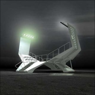 Stairway to Heaven est une proposition pour l’espace public: un espace individuel à usage collectif. Il se situe sur une place d’armes, en articulation avec le Parc dans un quartier populaire de la ville de Castelo Branco au Portugal. Avec cette réponse, nous avons remporté le Prix d’art contemporain au Portugal. Nous avons proposé de ne surtout pas toucher à l’espace public mais de rendre hommage à la cité qui se trouve sur la droite. Nous effectuons un rééquilibrage entre le centre historique et la partie sociale avec des constructions des années 1980.