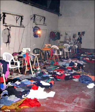 Plus directement politiques, Malachi Farell et Thomas Hirschhorn ne sont pas plus optimistes. Le premier met en scène à grands renforts d’effets spéciaux et de mécaniques sophistiquées, la danse esclave des machines à coudre et des chaises d’un atelier clandestin. Quant à l’installation du second, comme toujours saturée de carton, de scotch, de papier aluminium, de documents par milliers (photos, photocopies, livres), elle propose un chemin de croix en boucle, autour d’un gros gâteau de carton-pâte. Les douze stations sont chacune dédiées à l’une des utopies du XXe siècle, dont l’éclectisme dit la complexité du monde et son inconciliable désordre. Pêle-mêle : Nietzsche, l’Amérique (son basket et ses armes), le tourisme (Venise), l’art moderniste (Van der Rohe et Malevitch), l’art dégénéré, les utopies révolutionnaires (maoïste ou spartakiste), ou consuméristes (les montres Rollex et la mode). En face, les parts du gâteau ne sont que guerres, tortures, génocides, ou recettes de pâtisserie. Partout des seaux en plastique invitent au grand ménage. Mais on l’aura compris, ils sont aussi dérisoires que possible face au fiasco de l’art et du monde. Le programme annoncé « d’explosion et d’enthousiasme » dionysiaques a bien sûr tourné au cauchemar.