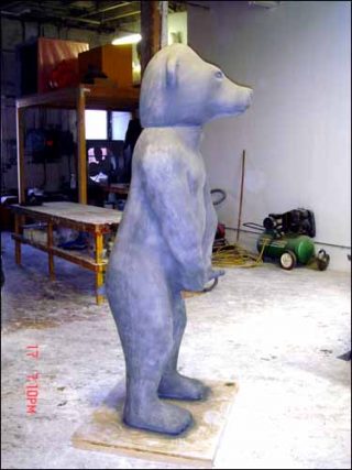Richard Jackson, Pump Pee Doo, 2005. Installation de 8 ours en fibre de verre moulé, peinture, produite par le Centre Pompidou. Haut. : 210 cm sans socle.