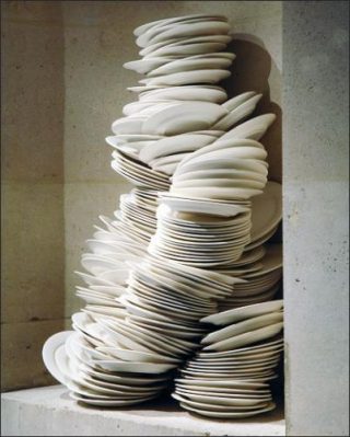 De l’inquiétant empilement d’assiettes de Ghislaine Vappereau à des croquis architecturaux sur le motif mais en relief de Jean Laube, en passant et en s’attardant sur les dégommés de Diego Movilla, dessins déchus, motifs que l’effacement seul peut donner à voir, en se laissant bousculer par la balançoire de Caroline Barc ou lessiver par les machines de Vassiliki Tsekoura, on comprendra que chaque pièce de Disgrâce joue une note du silence mélodique du déséquilibre, de la recherche d’équilibre, de la tenue, de la tension. Ça passe, le pari de Disgrâce, c’est que ça ne casse pas.