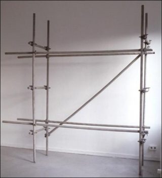 Au lieu de forger un décor spectaculaire au moyen d’expédients pauvres, Dominique Ghesquière inverse la farce du trompe-l’œil. Elle refabrique ou fait refabriquer en usine ou en atelier –l’émerveillement technique doit rester secondaire– des objets ordinaires (vaisselle blanche, mobilier basique, outils de bricolage, échafaudage, etc.) dans des matières inadéquates ou portant les traces d’une usure artificieuse. Tandis que les assiettes arborent dès leur cuisson des entailles de couteaux, escabeau supplante l’aluminium léger de l’objet industriel par du biscuit de faïence, intouchable, blanc et cassant.