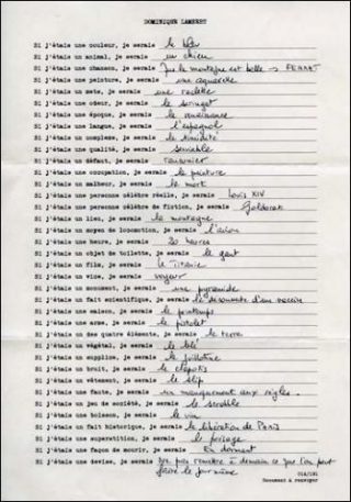 S’en est ensuivie une phase de recherches autour des analyses caractérologiques relatives au prénom Dominique: le caractère psychologique attribué aux personnes porteuses de ce prénom. Puis Stéphanie Solinas a envoyé un courrier à chacun des Dominique Lambert, pour leur demander de réaliser un test de personnalité et de remplir un portrait chinois.