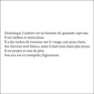 Le projet Dominique Lambert convoque toutes les techniques de représentation de l’identité et les utilise de façon exhaustive pour en interroger les limites. L’expérience a débuté par la constatation que Dominique et Lambert sont respectivement le vingt-septième prénom et le vingt-septième nom de famille les plus portés en France. Ainsi a été délimitée la population d’étude: les 191 Dominique Lambert répertoriés dans l’annuaire des particuliers français.