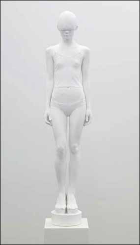 — Yoko XVIII, 2006. Acrylic composite, gesso. Sculpture: 135 x 34 x 25 cm, Plinth: 56 x 25 x 25 cm