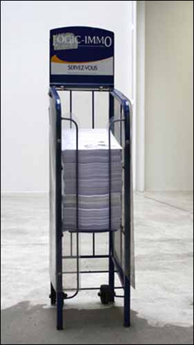 Pour Ryan Gander, l’empreinte est cette ultime survivance de l’histoire (The Floor Was in the Shade). Encore une fois, une histoire à double détente. Dans l’œuvre qu’il accroche ici, littéralement un panneau de liège sur lequel on punaise des feuilles, l’Anglais s’intéresse non seulement à l’objet et à l’évocation discrète qu’il peut faire de la modernité, du monde de l’entreprise et d’une certaine forme d’organisation souveraine.