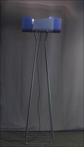 ― Leaves U, 2010. Lampadaire. 3 feuilles d’aluminium mises en forme par pliage, vernis transparent coloré et laque blanche, piètement en tube acier cintré, équipement électrique halogène, diffuseur et variateur. 55 x 28 x 178 cm. Edition ToolsGalerie de 12 ex +1EA + 1 prototype.