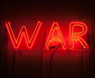 — Bruce Nauman, Raw War, 1970. Red neon, suspension frame. 16,5 x 43,5 x 3,8 cm.