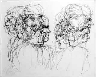 Tony Cragg entre au plus profond du frémissement de la ligne d’un visage qu’il démultiplie et ressasse avec obstination en énervant le trait et le papier, en ne lâchant pas prise avant d’être satisfait.
