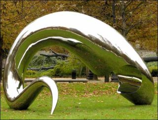 — I’m Alive, Vue d’installation aux Jardins des Tuileries, Paris, Octobre 2006. Acier inoxydable. 250 x 390 x 360 cm.Â