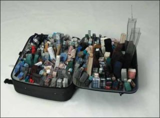 — Yin Xiuzhen, Portable Cities : New York, 2003. Valise et tissus, 90 x 140 x 30 cm