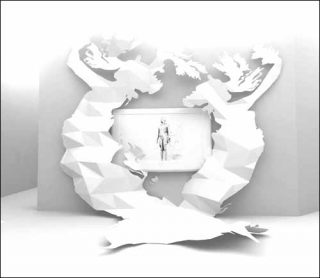 Dans Daphne Room, l’artiste reprend le mythe de Daphné, figure emblématique de la métamorphose, qu’elle interprète dans une fusion et profusion de procédés artistiques : vidéo et sculpture, aluminium et 3D. Les sculptures en aluminium léger ciselé, préalablement dessinées sur ordinateur, sont des silhouettes féminines mimant la transformation de Daphné en laurier. Tandis que dans l’une des deux vidéos, la silhouette en 3D d’une petite fille se désagrège, réduite en feuilles.