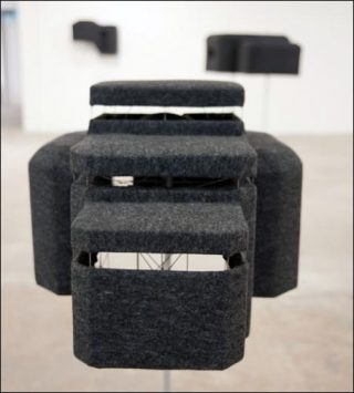 Une dizaine de formes de coiffes ont été choisies parmi une sélection d’abris normalisés allemands de la Seconde Guerre Mondiale issues de la base de données Todt. Ces sortes de coiffes-vêtements-sculptures en feutre ont été réalisées avec l’aide de Brigitte Paillet, sculpteur modiste. Le feutre brut, de couleur grise, est un matériau isolant, souple et rigide à la fois. Cette matière fait le lien entre le vêtement, élégant et protecteur, et le bunker, forteresse de guerre.