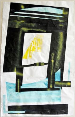 — Sarah Tritz, Espace de Chirico, 2010. Encre de chine, encre aquarelle et peinture en bombe sur papier. 149 x 93 cm