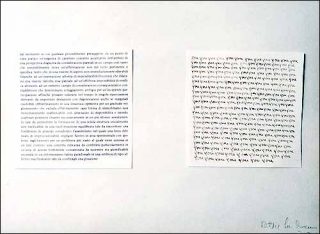 — Dal momento in cui (détail), 1972. 5 pièces. Print and handwriting on paper. 42 x 32 cm. 35 x 30 cm. 29 x 24 cm. 26 x 22 cm. 24 x 20 cm.