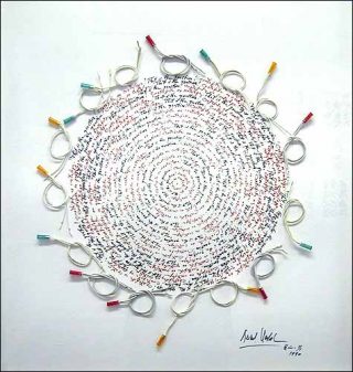 Eduardo Kac, artiste brésilien qui fut l’un des pionniers de la musique électronique, travaille aussi sur le mot et ses modes d’apparition dans deux «holopoèmes». Dans Andromeda Souvenir (1990) et Astray in Deimos (1992), le mot, formé en hologramme, est perçu par intuition, comme une révélation. La série Lagoglyph (2006-2007) joue aussi sur ce jeu de la révélation et du déchiffrage : la suite de glyphes inventés par l’artiste se présente comme un alphabet imaginaire, et expose un nouveau langage.