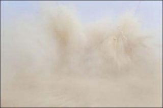 Dans la vidéo Du vent, un château de sable s’érode petit à petit. Emblématique du plaisir des jeux de l’enfance et de leurs ratages, ce pâté de sable filmé disparaît inévitablement confronté à un souffle violent. Dans des tonalités similaires, une nouvelle production, série photographique, met en scène des explosions de poussière évoquant là encore un jeu qui affleure le danger du vide et du néant.