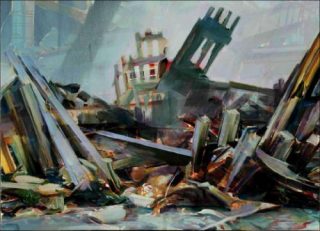 Duncan Wylie. Dans mes tableaux je parle de choses que j’ai vues dans mon pays, le Zimbabwe. J’ai vu un peuple fier dépossédé de ses richesses, de ses avancées sociales, scolaires et culturelles. J’ai assisté à la ruine économique et mentale de mon pays. C’est en cela que ma peinture parle de la ruine. Elle traite au départ de la ruine d’un pays.