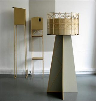 L’utilisation de fragments architecturaux dans ces sculptures accentue la perte de leur référent réel: la globalité des systèmes industriels où ces formes prenaient leur sens est perdue. L’éloignement par rapport à leur contexte d’origine est redoublé par le passage d’une industrie lourde et polluante à des maquettes fragiles, parfois graciles.