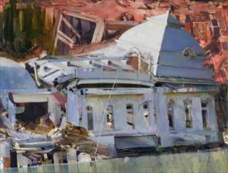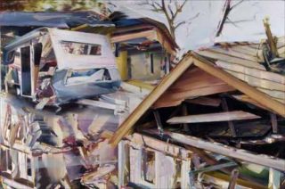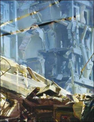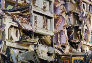 En accumulant des images, je les déconstruis et les prive de sens: un immeuble à Beyrouth peut devenir le Ground Zéro, une maison à Bagdad ou un parking démoli à St-Ouen. Je me situe avant tout du côté pictural car c’est par le biais de la peinture que je redonne un sens à ces images. C’est le moment de leur impact qui m’intéresse et que je traduis par des évènements et des accidents sur la toile. Il s’agit donc de construction, ce que j’appelle une «utopie de la peinture». J’essaie d’échapper à tout genre de peinture et je suis toujours en quête de sujet. Le terrain de la ruine est plutôt un passage, propice à la découverte de la peinture.