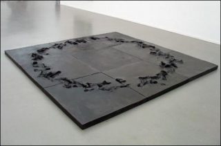 — Julien Dubuisson, Ghost Dance, 2010. Ciment-résine. 9 dalles de 100 x 100 x 7 cm.