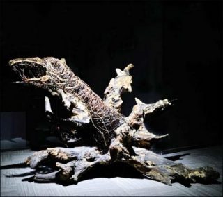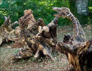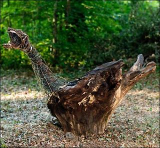 Le motif de la nature est ici repris à travers une forêt d’oliviers qui prend place dans la nef. L’installation produite est un nouveau processus pour l’artiste, une éclosion fabuleuse à l’extrémité des branches de ces arbres marqués par le temps. Une vitalité extraordinaire prolifère, comme un sursaut de sève venu du plus profond des arbres que l’on considérait pour mort. Une contamination vivante et vivifiante s’offre à nous. La découverte de cette forêt est peuplée de chimères qui s’extirpent des souches. Des troncs, des arbres charriés par le courant de la Mayenne qui semblent êtres sortis des eaux tumultueuses par la vie, qui là encore, jaillit à nos yeux.