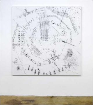 — José Maria Sicilia, Suspendido De Su Canto, 2009. Graphite sur toile, plâtre. 200 x 200 cm