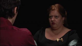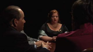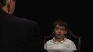 Rapidement l’unicité de la voix de ces personnages rend la situation, autant que le dialogue, étrange. Comme dans un rêve, une même voix d’homme jaillit de ces corps, et de ces êtres différents. La distorsion, à son comble en ce qui concerne la femme et l’enfant, semble pourtant se résoudre, comme si l’apparence visible parvenait quand même à en modifier la substance.