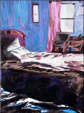 — Des peintures au vernis à ongle dupliquent certaines images de ce film-diaporama (galerie de portraits, accessoire de l’ordinaire, paysage anonyme…), et ainsi extraites de son propre film il donne à voir encore une autre lecture de ces clichés communs, soumis à une nouvelle déperdition, fantôme des originaux.