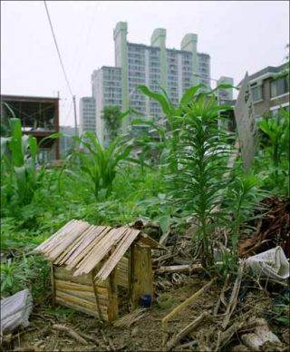Outre leur petite taille, les cabanes évoquent le solitaire, l’ermite subsistant dans la nature ou en ville. La multitude étant évoquée à travers l’image des immeubles. Y a-t-il une volonté d’opposer le destin de l’individu face à celui du grand nombre ?