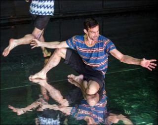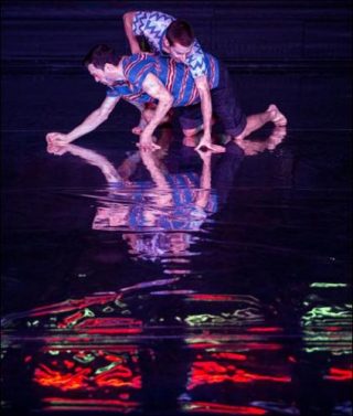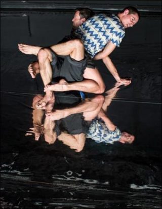 Collaborateurs de la Forsythe Company, Ioannis Mandafounis et Fabrice Mazliah poursuivent avec Eifo Efi leur recherche sur la tension produite entre l’image et sa perception, après les créations de P.A.D., HUE, Z.E.R.O., Cover Up et The Nikel Project. L’apparente simplicité de leur tenue, de leur vocabulaire gestuel et de leurs paroles est un leurre, tant le duo joue de la juxtaposition et de la surimpression des thèmes, gestuels ou langagiers, indépendants les uns des autres, mais qui se fondent dans une mobilité constante et modifient en permanence la perception du spectateur. Impression redoublée par le sol réfléchissant qui, tel un miroir, démultiplie leurs reflets et offre une représentation visuelle du concept de multiplicité. “Nous voulons créer un environnement virtuel d’impressions multiples qui stimulent les sens, afin que notre présence puisse révéler une multitude d’autres présences. En partant du postulat d’Alain Badiou, “rien n’existe seul, nous sommes toujours à l’intérieur d’une situation, les éléments de quelque chose qui n’est pas réductible à nous mêmes”, nous nous sommes interrogés: comment une individualité peut-elle être multiple?” Saturant l’espace d’échos de ce qui se joue sur le plateau, les danseurs usent de l’humour et du minimalisme de leur vocabulaire gestuel et textuel pour produire un entrelacs de signes qui résonnent entre eux et se modifient à travers la réverbération infinie de leurs reflets.