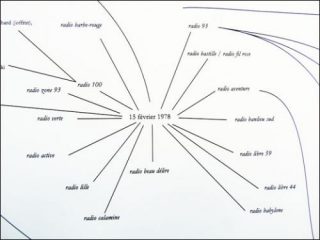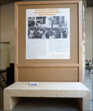 Ainsi, le visiteur peut-il confortablement s’installer sur des poufs tout en écoutant un «medley» d’archives radio extraites de l’Encyclopédie de la parole, créé par David Christoffel. Ou contempler la fresque au mur composée de photographies et documents inspirés du livre de Thierry Lefebvre La Bataille des radios libres (1977-1981).