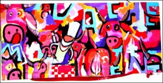 Tous les murs sont saturés de couleurs, chaque centimètre-carré est mis à profit pour l’accrochage et la présentation des œuvres. Ça déborde de tableaux, les styles se croisent. Ici le public peut toucher, s’approcher. Il n’y a plus d’interdit !