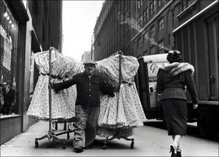 Les photographies prises par Sabine Weiss dans les rues de New York en 1955 reflètent les différentes strates de la société américaine : des hommes d’affaires aux ouvriers, des vendeurs de rue aux groupes d’enfants. Son Å“uvre capture également les dynamiques propres à la grande ville américaine : l’empressement, l’agglutinement, l’attente dans de longues queues. Chaque image révèle le quotidien de la ville et de ses habitants, chaque image en préserve l’éphémère mouvement. Le scénariste Olivier Beer écrit au sujet des photographies de l’artiste : « Elles ne sont pas posées. Pas même des arrêts sur image. Non, ces photos sont le début d’une histoire. Ou son milieu. Ou sa fin. Et souvent elles sont un film tout entier. »