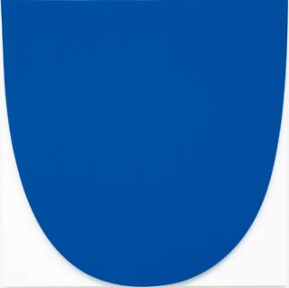 La courbe est apparue très tôt dans l’art de Ellsworth Kelly. Un large arc surplombe la forme verticale de Kilometer Marker (1949), tandis que deux courbes, complémentaires sans être identiques, descendent en direction des deux coins inférieurs de Relief with Blue (1950). Comme Ellsworth Kelly l’a expliqué à de nombreuses reprises, la forme de Relief with Blue a pour origine un croquis qu’il a fait pendant une représentation d’Hamlet au Théâtre Marigny à Paris à la fin des années quarante. L’élément en relief, avec ses bordures intérieures courbes, évoque la forme d’un rideau entrouvert.